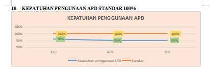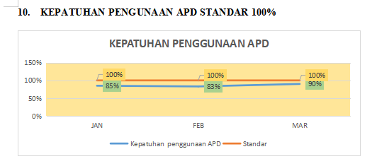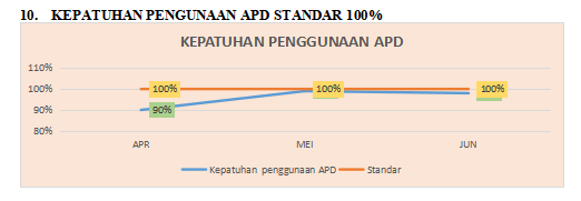13 | Kepatuhan penggunaan APD | 100% | 85% | 83% | 90% | 86% |