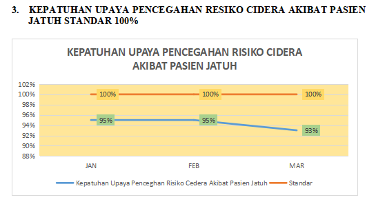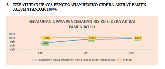 12. | Kepatuhan Upaya Penceghan Risiko Pasien Jatuh | 100% | 95% | 95% | 93% | 94,3% |