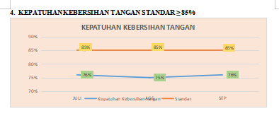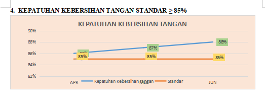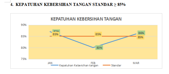 11. | Kepatuhan kebersihan tangan | ≥ 85% | 87% | 80% | 86% | 84,3% |