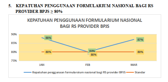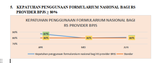 4. | Kepatuhan penggunaan formularoium nasional | ≥ 80% | 88% | 80% | 87% | 85% |