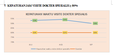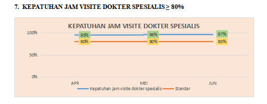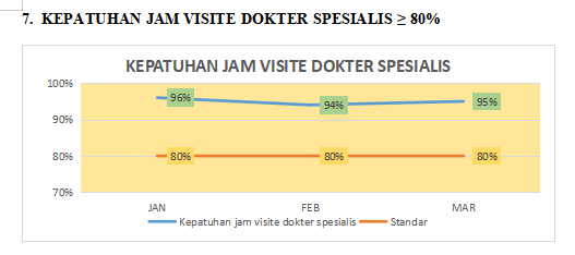 6. | Kepatuhan jam visite dokter pukul 06.00-14.00 | ≥ 80% | 96% | 94% | 95% | 95% |