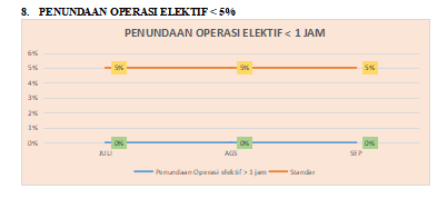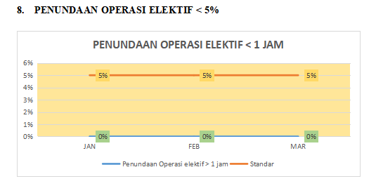 2. | Penundaan Operasi elektif > 1 jam | <5% | 0% | 0% | 0% | 0% |