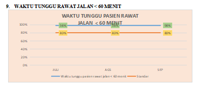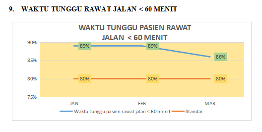 9. | Waktu tunggu pasien rawat jalan < 60 menit | 80% | 89% | 89% | 86% | 88% |
